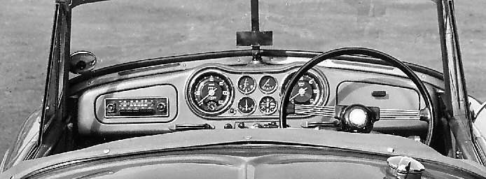 Instrument Panel: Mk1 - walnut veneer panel with recessed instruments in direct view of the driver. Mk1a - metal panel painted body colour with chrome bezel instruments placed central to the car's axis. This panelwork made it much easier for RHD and LHD Jupiters - just swap the rev counter and the speedometer - so photo below